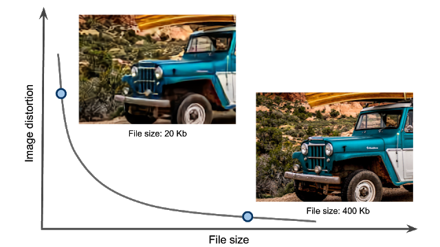 图像压缩中图像质量和文件大小之间的权衡:理想情况下,图像失真程度和文件大小都应达到最小,但这两者存在根本性冲突