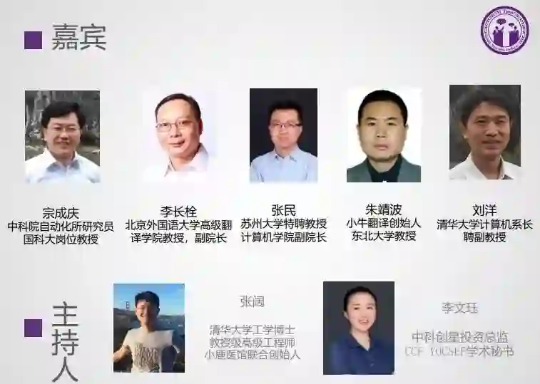 在AI Time第六期的辩论中,中科院自动化研究所研究员宗成庆、北京外国语大学高级翻译学院副院长李长栓、苏州大学计算机学院副院长国家杰青张民、东北大学计算机学院教授朱靖波、清华大学计算机科学与技术系长聘副教授刘洋一起论道了机器翻译的相关问题。