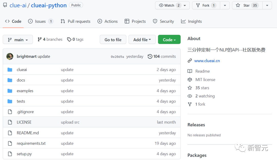 ClueAI支持通过pip安装Python软件包,以简化在python3中与clueai API的接口。