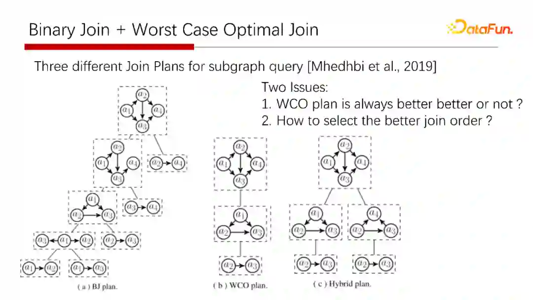 滑铁卢大学做的图数据库系统GraphFlow,就提出把Worst Case Optimal Join和Binary Join相结合,在子图匹配的执行选择中既考虑Binary Join,又考虑Worst Case Optimal Join。