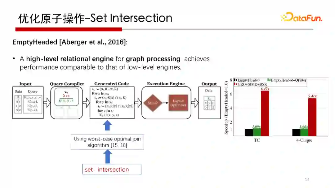 Stanford做的开源的图处理引擎(graph processing)系统,也是用Worst Case Optimal Join做的,在其系统中,将我们研究的集合求交优化算法替换之后,发现性能有比较明显的提升。