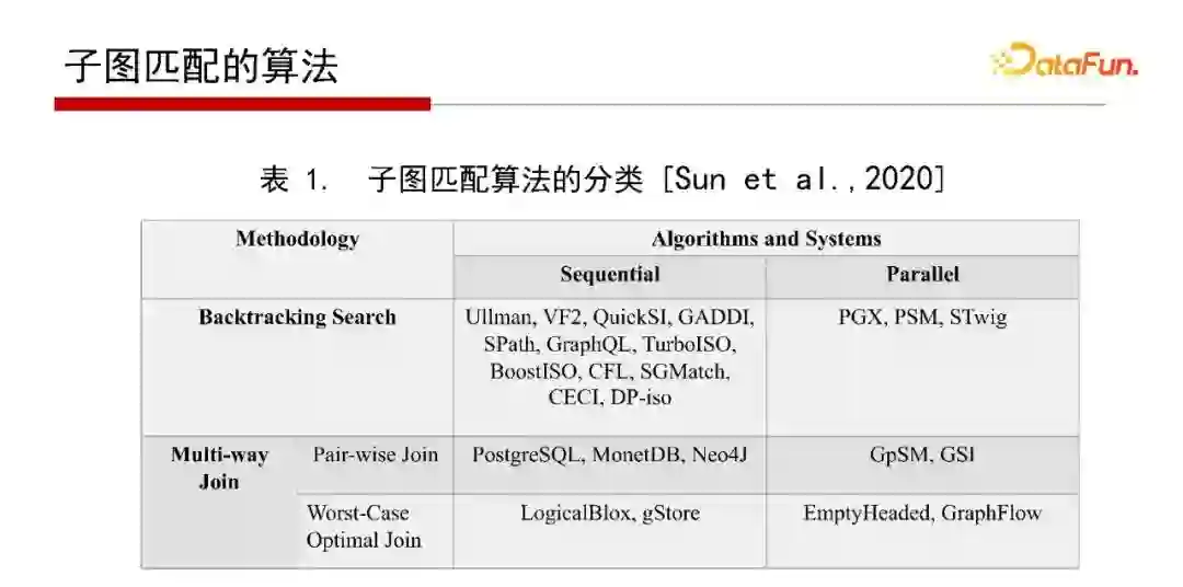 在一篇SIGMOD 2020实验论文中指出,做子图匹配可以有两类算法,一类为基于深度搜索加回溯的方式(Backtracking Search),一类为基于广度优先的Multi-way Join方法。