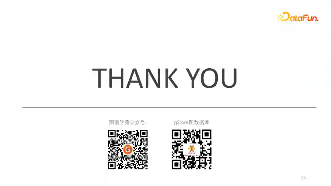 这是我们组的一个公众号“图谱学苑”和gStore图数据库官网信息,大家有兴趣可以关注一下。谢谢大家。