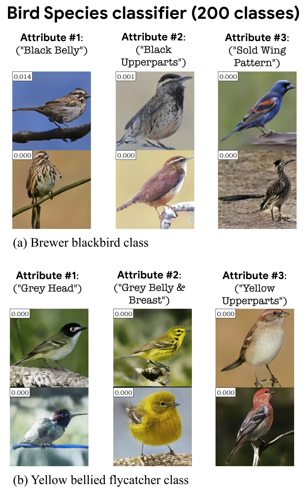 特定于鸟的分类器(200 个类),事实上 StylEx 检测到与 CUB(鸟类数据集) 分类中的属性相对应的属性