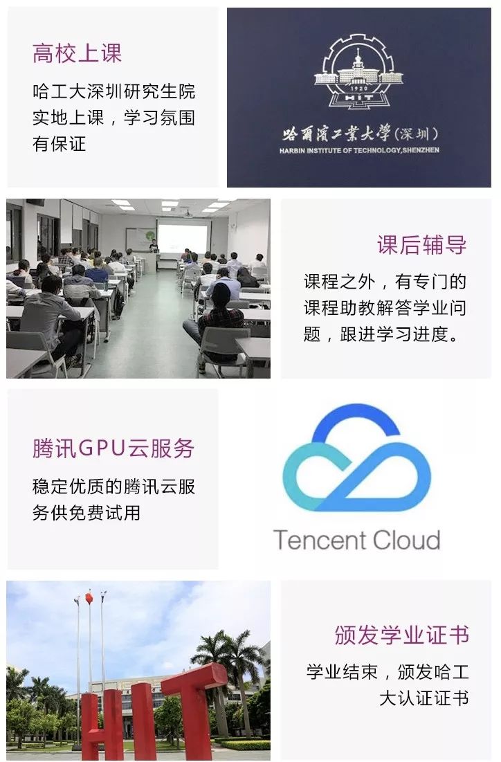 基础课程全部由哈尔滨工业大学(深圳)计算机学院教师团队任教,具有丰富的教学经验;实践课程聘请人工智能行业合作企业资深工程师任教,项目实战研发经验丰富,可提供企业海量数据案例供学生学习。