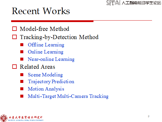 目前大多数的MOT工作的方向为Tracking-by-Detection的思路,即先将每一帧中的目标检测出来,然后对这些检测出来的框做跟踪。另一种思路就是Model-Free,即先将第一帧中的目标检测出来,然后在之后的帧中跟踪第一帧标注出来的目标。