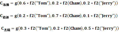 就是3,h1=f(“Tom”),h2=f(“Chase”),h3=f(“Jerry”)分别是输入句子每个单词的语义编码,对应的注意力模型权值则分别是0.6,0.2,0.2,所以g函数本质上就是个加权求和函数。如果形象表示的话,翻译中文单词“汤姆”的时候,数学公式对应的中间语义表示
