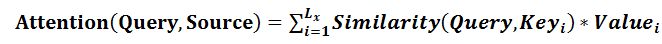其中,=||Source||代表Source的长度,公式含义即如上所述。上文所举的机器翻译的例子里,因为在计算Attention的过程中,Source中的Key和Value合二为一,指向的是同一个东西,也即输入句子中每个单词对应的语义编码,所以可能不容易看出这种能够体现本质思想的结构。