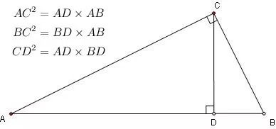 射影定理也被称为欧几里得定理,或者第一余弦定理。其内容为在直角三角形中,斜边上的高是两条直角边在斜边射影的比例中项。事实上,这个操作也是我们在尺柜作图时,对一个数进行开方运算的方法。