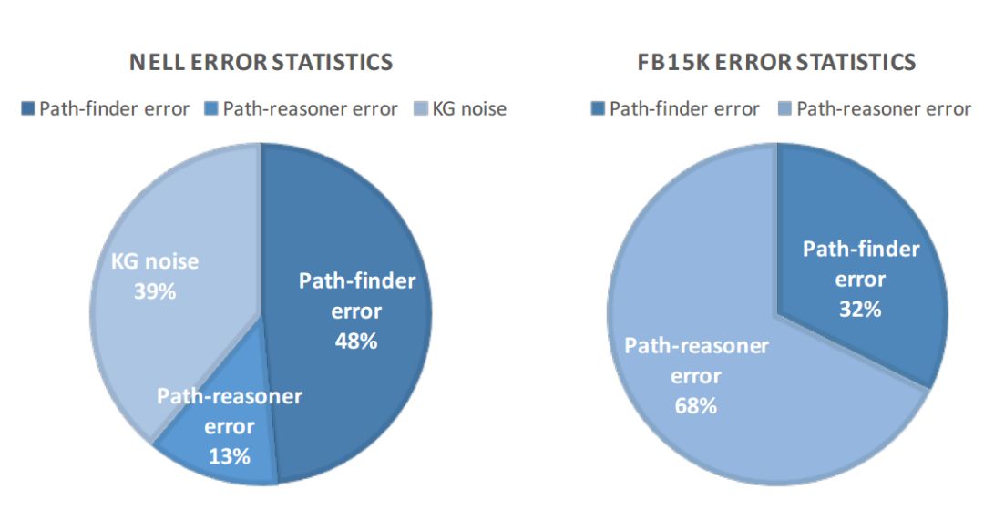 图 5:NELL 和 FB15k 连接推理任务的误差分析。由于 FB15k 数据集将占位符也作为实体,我们无法分析出误差是否来源于 KG 的噪声。