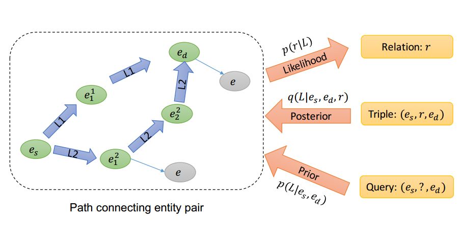 在 KG 推理中引入了变分推理框架,将路径搜索和路径推理紧密结合从而进行联合推理。