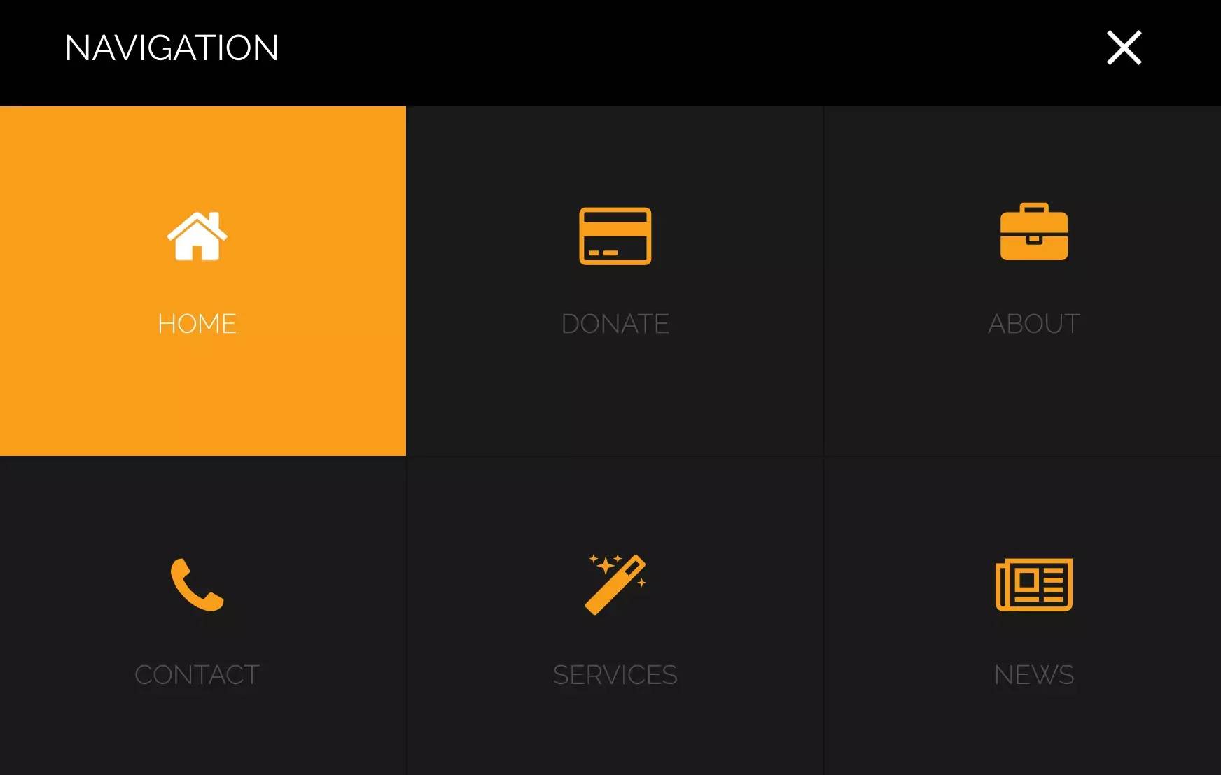 总体来说OurMine的网站设计比较简洁,点击首页右上角的功能键可以展开功能菜单,分别是:首页、捐赠、关于我们、联系我们、服务、新闻。