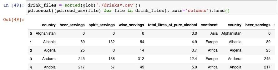 同上一个技巧一样,我们以使用glob()函数开始。这一次,我们需要告诉concat()函数按列来组合: