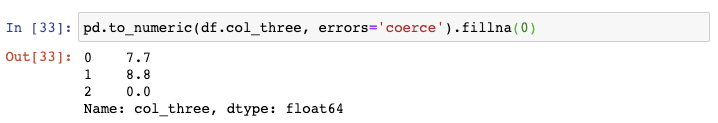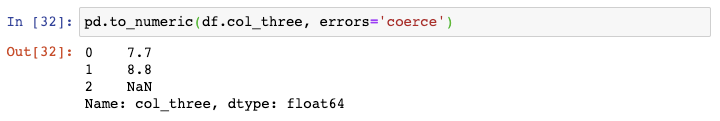 你可以对第三列使用to_numeric()函数,告诉其将任何无效数据转换为NaN: