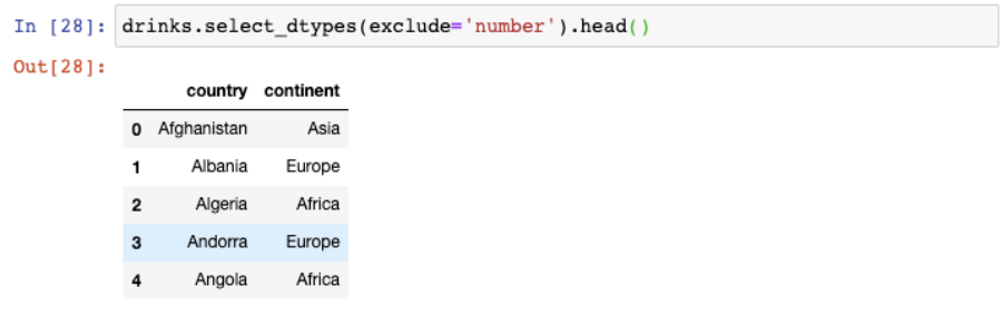 | continent | total_litres_of_pure_alcohol | wine_servings | spirit_servings | beer_servings | country | |