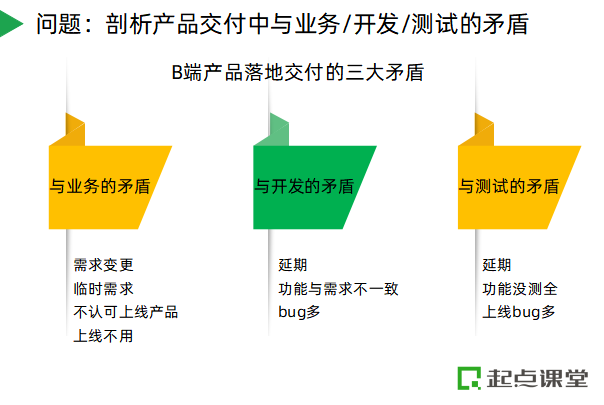 (2)问题:剖析产品交付过程中与业务/开发/测试的矛盾