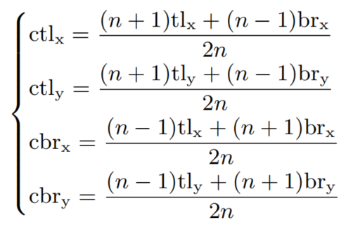 设 和 表示 的左上角的坐标, 和 表示 的右下角的坐标。定义一个中心区域 。设 和 精确表示 的左上角的坐标, 和 表示 的右下角的坐标。那么 、 、 、 、 和 应该满足以下关系: