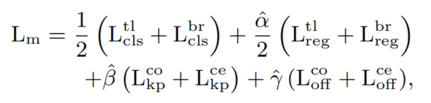 和 分别为Focal Loss,用于训练网络检测角点和中心关键点。