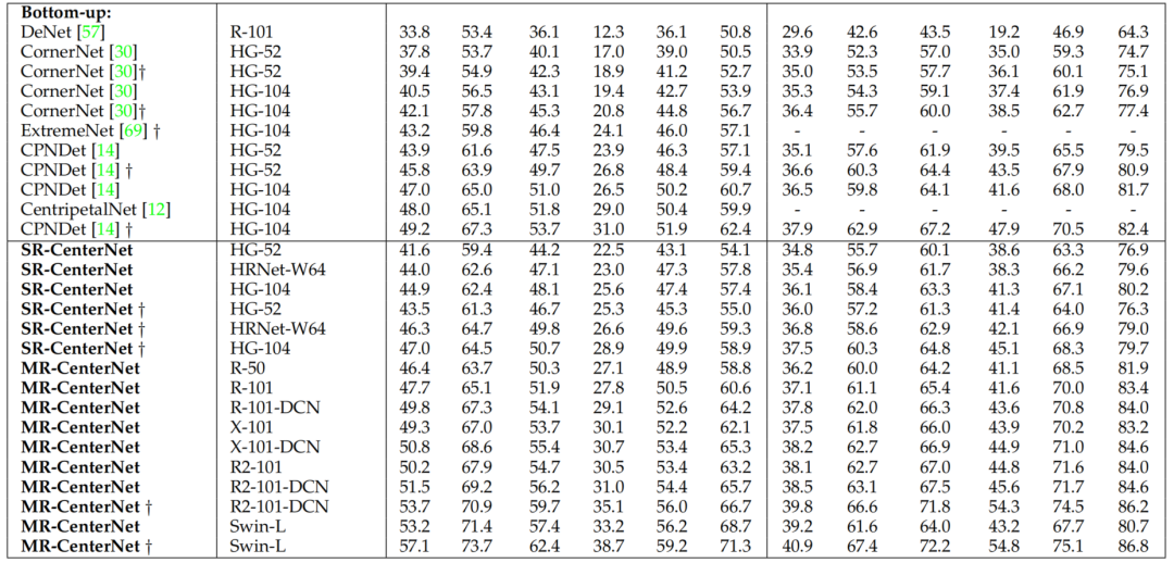 bottom-up方法中实现了最先进的检测精度,并与其他top-down方法的最先进性能相当。通过适当降低结构复杂度,