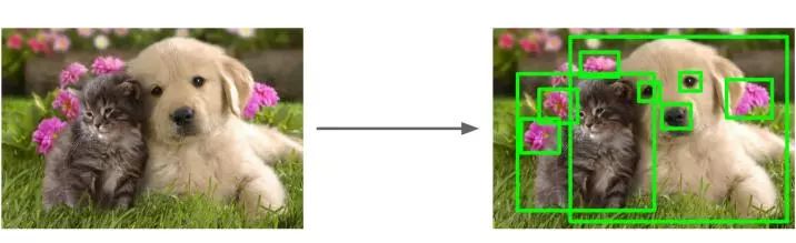 找出可能含有物体的框(也就是候选框,比如选1000个候选框),这些框之间是可以互相重叠互相包含的,这样我们就可以避免暴力枚举的所有框了。