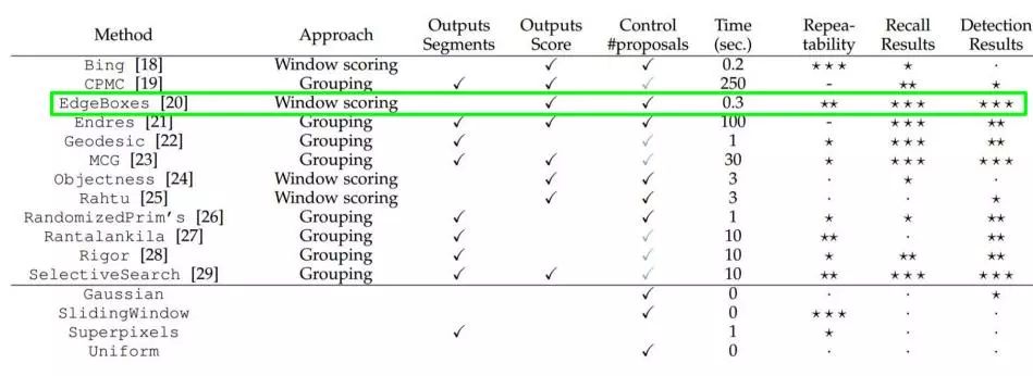大牛们发明好多选定候选框的方法,比如EdgeBoxes和Selective Search。