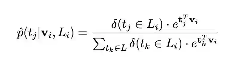 对应的是在远程监督中,当前实体真实类型标签集合。从公式我们可以知道,尤其是看分母,在不属于这个集合的标签概率我们并没有计算在内。