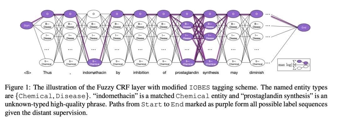 其实很好理解,传统的CRF最大化唯一一条有效的标注序列。在这里,我们最大化所有有可能的标注序列。