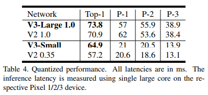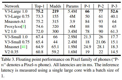 V3-Large取得了最高的精度,V3-Small 取得了V2近似的精度,速度却快很多。