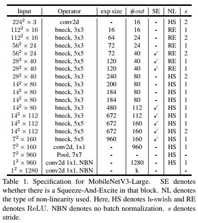 研究人员公布了 MobileNetV3 有两个版本,MobileNetV3-Small 与 MobileNetV3-Large 分别对应对计算和存储要求低和高的版本。
