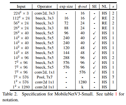 使用上述搜索机制和网络改进,最终谷歌得到的模型是这样(分别是MobileNetV3-Large和MobileNetV3-Small):