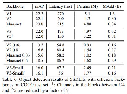 这是使用其构筑的SSDLite目标检测算法在MS COCO数据集上的比较结果: