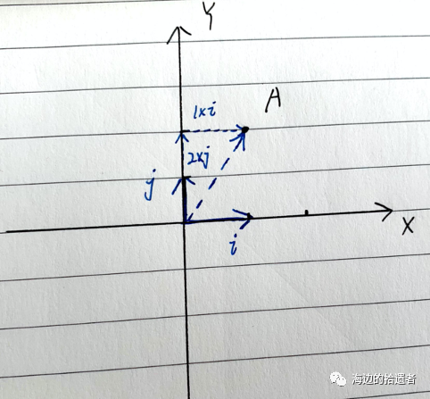 我先说答案,再说为什么是这个答案~。答案就是通过坐标系的基向量来表示数据(向量)。如图所示,我们取i和j作为基向量(在这里i的坐标为(1,0), j的坐标为(0, 1)),那么数据A(1, 2),就可以表示为(1*i, 2*j)。于是我们把这个问题拓展开来,二维上的数据点可以通过(基向量i*数据点在基向量i上的投影长度,基向量j*数据点在基向量j上的投影长度)表示,那么三维上的数据点也可以用这样的方式,于是乎n(n>=2)维上的点可以表示为:(基向量i*数据点在基向量i上的投影长度,基向量j*数据点在基向量j上的投影长度,…,基向量n * 数据点在基向量n上的投影长度),于是乎我们这个子问题就解决了,即找到了一种在不同维度坐标系下表示数据的方法。