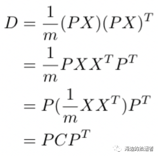假设我们最终的协方差矩阵(就是上面说的对角化后的矩阵)为D,X为我们的特征矩阵,C为我们特征矩阵X的协方差矩阵,我们要找到一个矩阵P,使得我们的X特征矩阵可以变成D矩阵。
