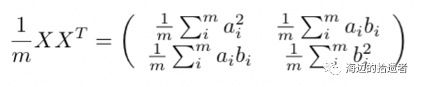 可以发现,这个矩阵的正对角线就是我们的标准1,也就是方差,而其他的位置则为协方差。所以我们的目的就是使得协方差的位置为0,然后选取方差最大的值(选取方差最大的值可能有点疑惑,是这样的:我们的特征矩阵X是可以有很多特征的,比如年龄,血压,心率,肺活量等等,而方程右边的a和b就是这些特征中的一个,那么势必有些特征的方差比较大,有些特征的方差比较小。而那些方差比较小的特征我们就觉得它们没有那么好的区分效果,而那些方差大的就觉得它们有很好的区分效果,于是乎就把它们选中)。