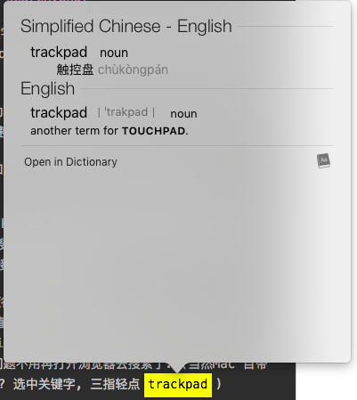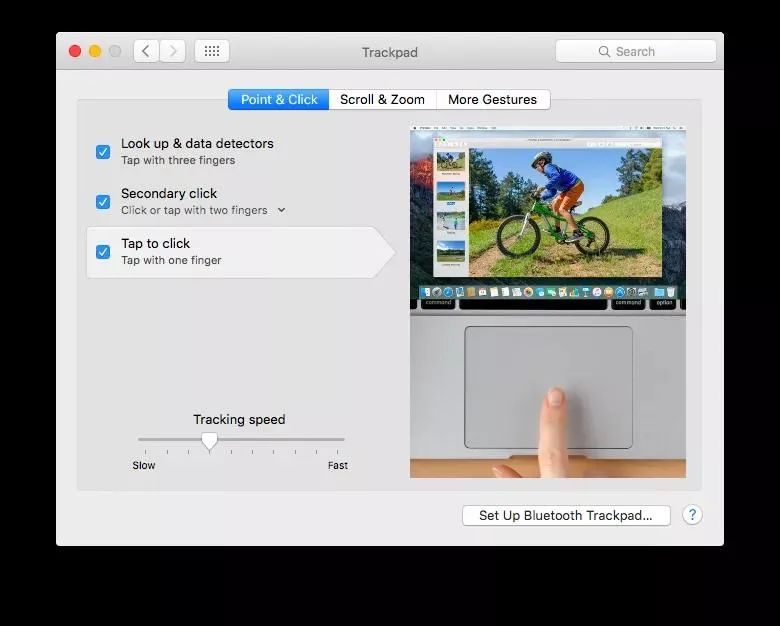 1. 启用 Tap to click:在 System Preferences -> Trackpad 中启用, 用 tap 替换 click 的操作,明明轻轻 tap 就可以完成的, 为何还要用力点击才 OK。现在偶尔用其他人电脑非得用力 click 就太纠结了。同时,还有 "右键"功能,Secondary click,用两个手指 tap 弹出右键菜单。