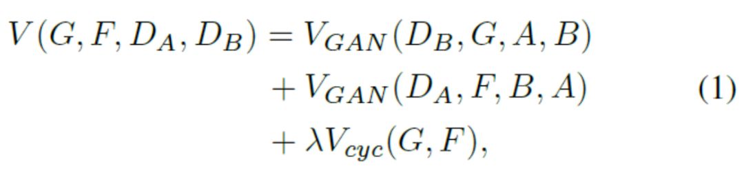 y的周期一致性损失,其中每个图像可以在循环映射后重建。 λ惩罚VGAN和Vcyc之间的重要性。