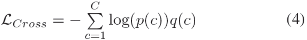 其中C是类的数量,而p(c)是标准中输入的预测概率。 p(c)由softmax层归一化,所以。q(c)是ground-truth。由于训练集中的每个人都属于单一身份y,因此q(c)可以定义为,