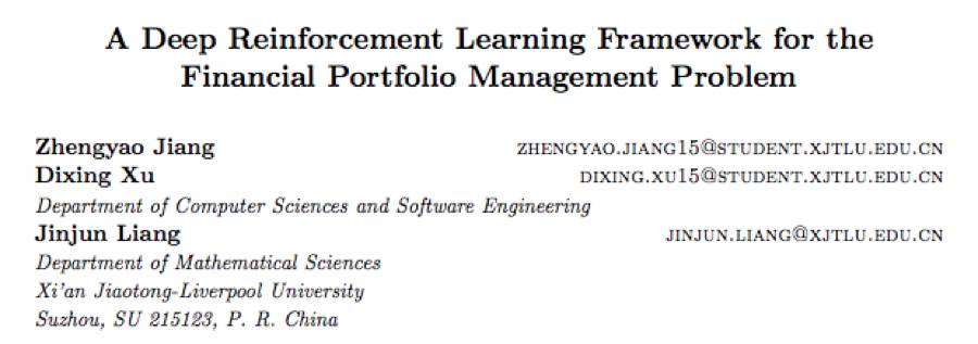 论文:A Deep Reinforcement Learning Framework for the Financial Portfolio Management Problem(使用深度强化学习框架解决金融投资组合管理问题)