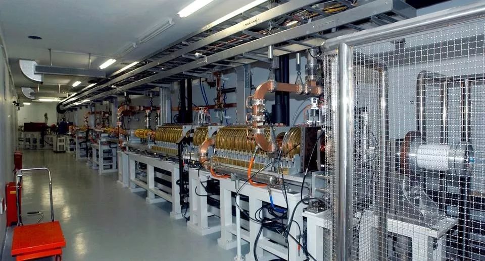直线加速器(LINAC) 直线加速器是将电子枪产生的电子加速到一定的能量,以适应增强器注入的要求,直线引出电子能量太低的话,在注入增强器的时候会有较大的损失。上海光源直线加速器由一台电子枪、两个聚束器、四根微波加速管、一系列聚焦线圈和必要的束流匹配系统组成,可以将电子加速到150MeV。图2为上海光源直线加速器的照片。