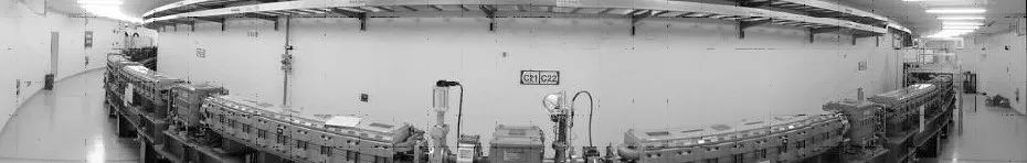 储存环(Storage Ring) 和所有的第三代同步辐射装置一样,储存环是上海光源的核心系统,它用来完成对增强器引出电子的累积以及高能电子的储存等工作。上海光源的储存环全长432米,由20个基本单元组成,其中每5个基本单元构成一个超周期,一共4个超周期。通过二极磁铁的导向和四极磁铁的聚焦,电子在储存环中将沿一条闭合轨道运动,同时由于高能电子的同步辐射效应,偏离轨道的电子将在很短的时间里收敛到闭合轨道上来,对于上海光源储存环而言,这个过程大约需要10到20个毫秒。也正是由于这一收敛特性,储存环才能通过一个经过特殊设计的注入系统实现电子的累积,电子在注入储存环时和闭合轨道保持一定的距离以保证已经储存在环中的电子不会遭到损失,而增强器最快500毫秒才能提供一团电子,这时前一次注入的电子早已收敛到闭合轨道上了。