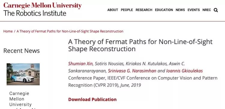 CVPR 2019 的最佳论文奖颁给了联合研究的《非视距形状重建的费马路径理论》(A Theory of Fermat Paths for None-Line-of-Sight Shape Reconstruction) 一文。
