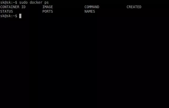 CONTAINER ID IMAGE COMMAND CREATED STATUS PORTS NAMES