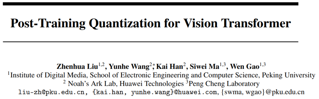 《Post-Training Quantization for Vision Transformer》