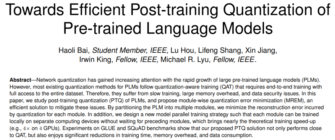 《Towards Efficient Post-training Quantization of Pre-trained Language Models》