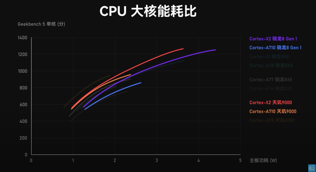 在这种性能收益出现明显衰减的临界点,如果我们略微降低处理器的最高频,就会获得类似「牺牲 10% 性能,获取 20% 的能耗收益」的效果。在旗舰芯片上,这点降频对于日常「刷刷刷」类用户来说影响甚微。