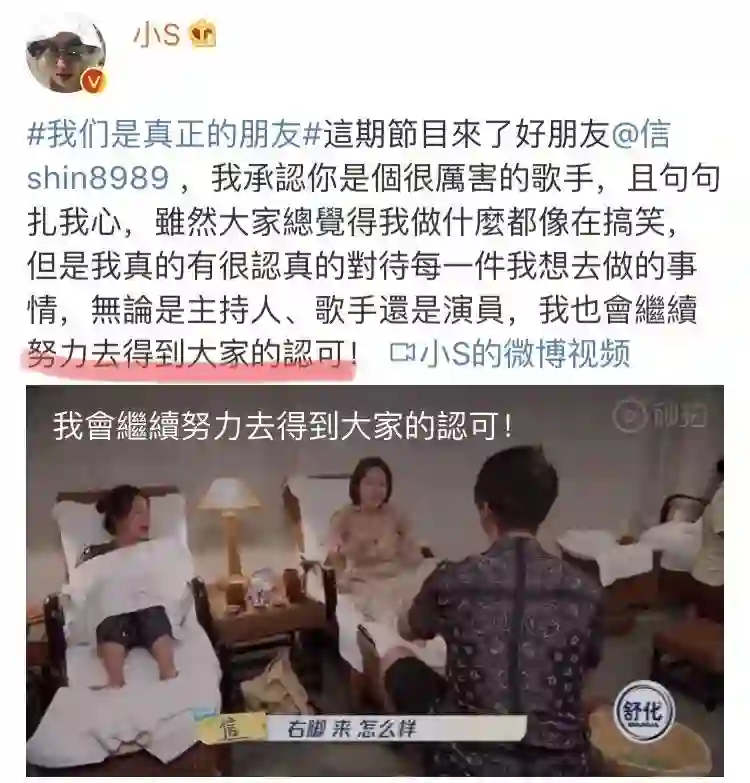 而小S表现出来的那种状态,是渴望被所有人认可的。