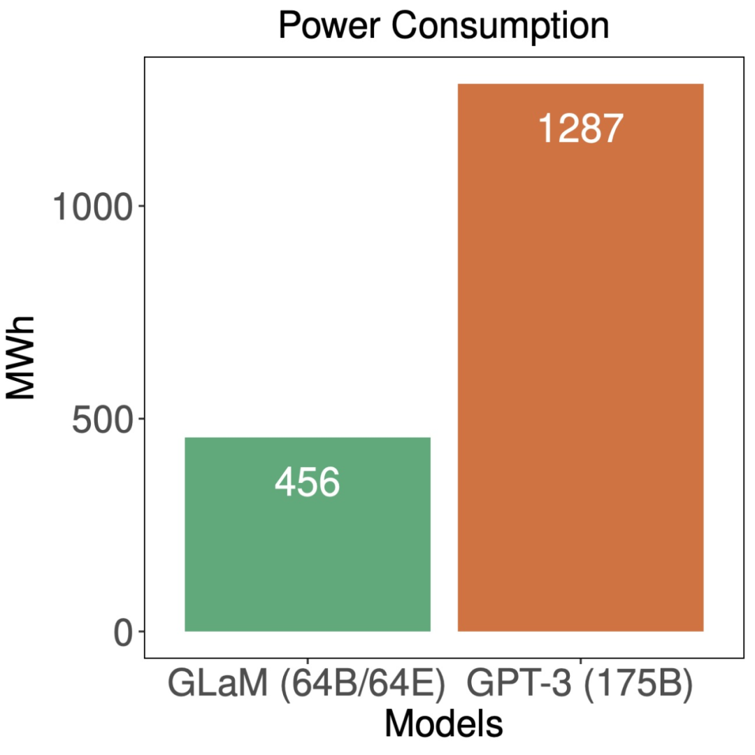 训练大型语言模型计算密集,因此提高效率有助于降低能耗。该研究展示了完整版 GLaM 的计算成本。