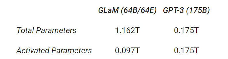 此外,虽然完整版 GLaM 有 1.2T 的总参数,但在推理过程中每个 token 仅激活 97B 参数(1.2T 的 8%)的子网。