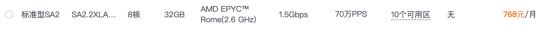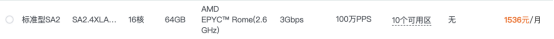 而腾讯云SA2机型的价格则和控制台展示一致: