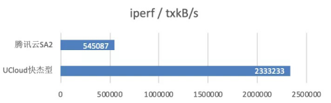 测试结果可见,UCloud快杰云主机的网络吞吐能力大约是腾讯SA2型的 4.3 倍。
